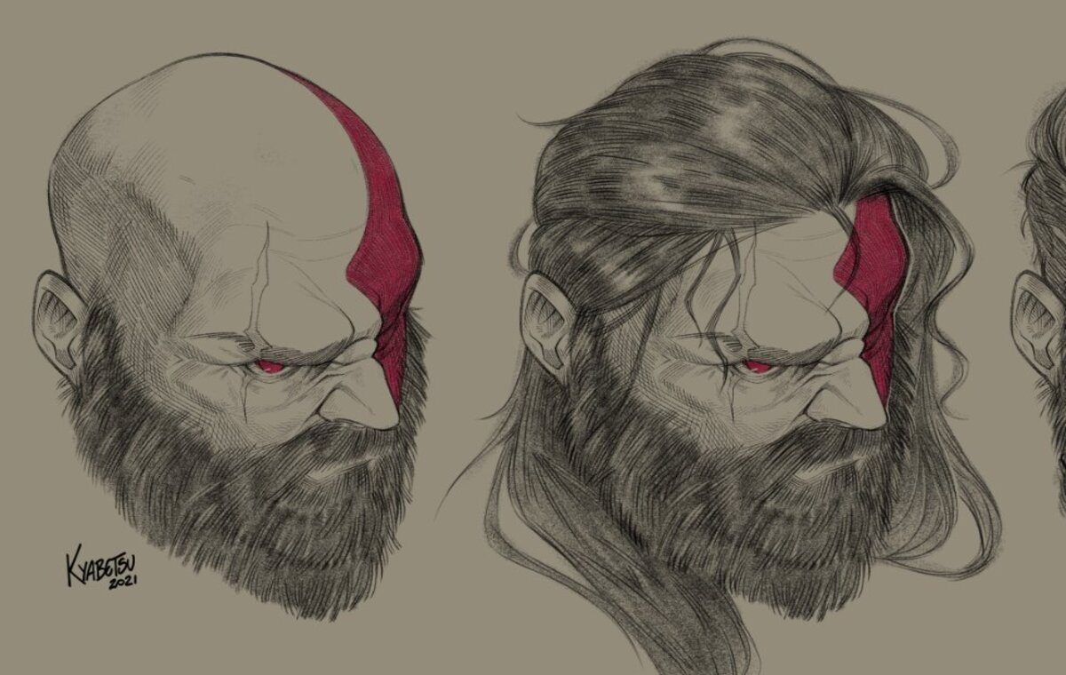 ولأن مدير اللعبة David Jaffe أراد أن يظهر Kratos بشكلٍ غير تقليدي. كما تشمل التغييرات الأخرى إزالة درع وملابس اسبرطة، وقناع العين، وطفل رضيع على ظهره، والذي من المفترض أن يكون atreus (Loki).